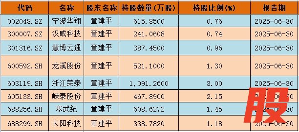 不止寒武纪,章建平最新持有这些个股,有的已大涨不止寒武纪,章建平最新持有这些个股,有的已大涨
