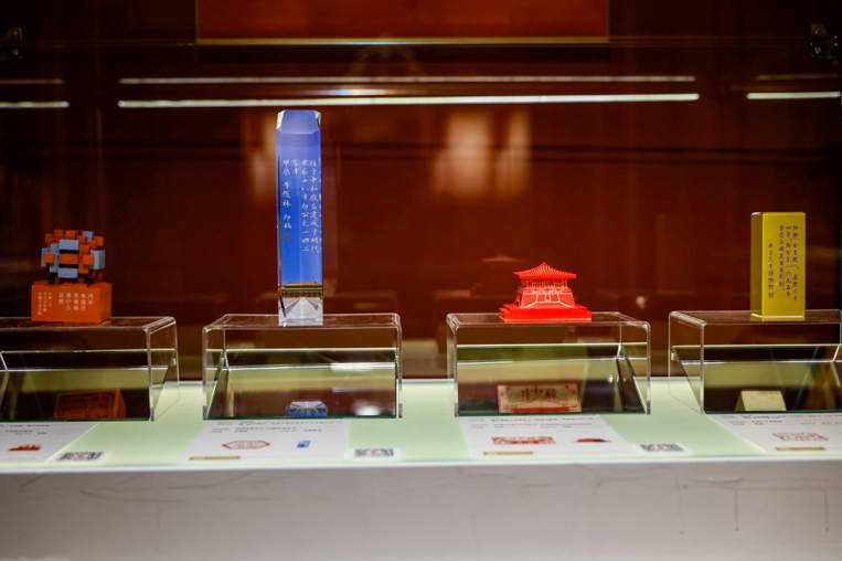 第二部分60余枚反映上海历史文化和创新发展的印章,由上海本地学校师生、企业职工等大众篆刻爱好者创作。展览现场,这些由上海大众篆刻创作爱好者创作的印章反映上海历史文化价值和新时代创新发展的印章,和北京中轴线作品交相辉映。