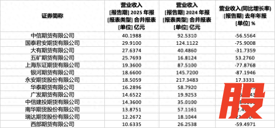 从营业收入规模来看,共有13家期货公司2025年营收突破10亿元大关。