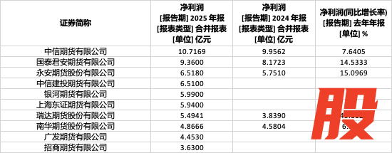 2025年净利润前十的期货公司
